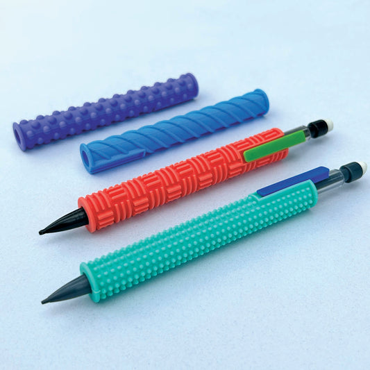 Gidgets are sensory tools that go with you to school or work. Slip the silicone sleeve on your pencil, and ta-da! You've got a textured writing implement that will keep your fingers satisfied and your brain focused.