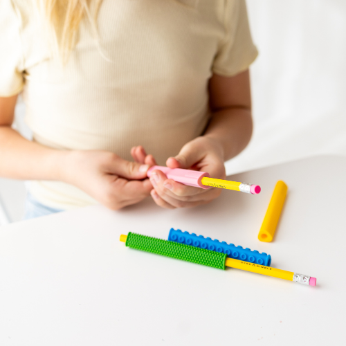 Food-grade silicone; mechanical pencils; packaging made of recyclable PET and paper.